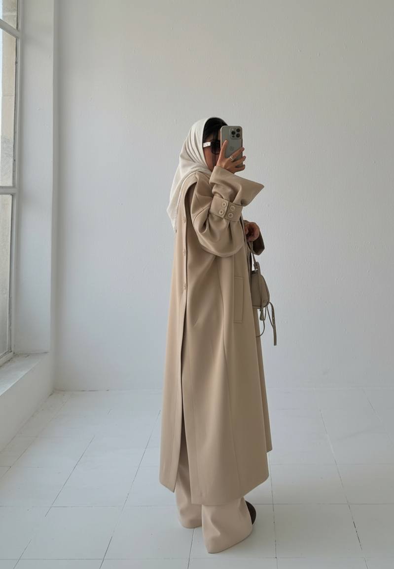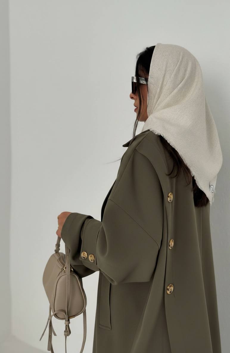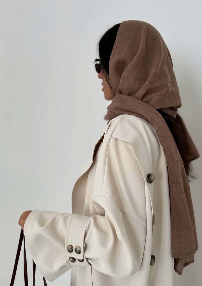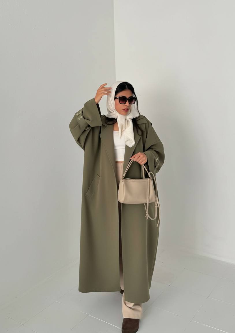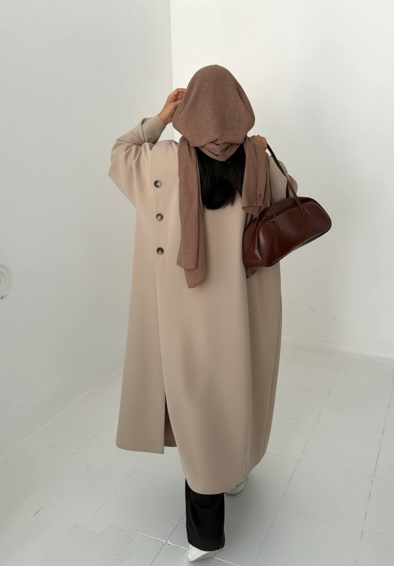 بارانی بلند زنانه چاک دار جنس کتان